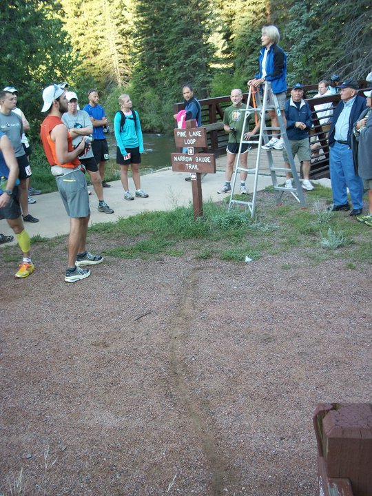 My friend Mariah volunteered to take me to the North Fork 50km and I happily accepted. Thanks to her, you have some pictures to see! She and her wonderful border collie Indigo served as my outstanding crew. We arrived early enough to see the early starters for the 50 miler start at 6:00am.